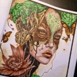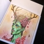 This coloring book contains 40 original illustrations of characters from the fantasy realm of Floria. Queens, princes, fairies, crows and more – creatures made of intricate flowers, plants and vines.