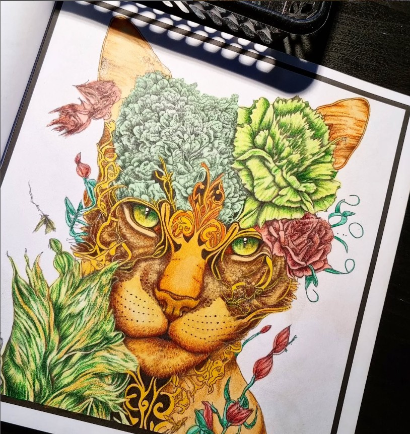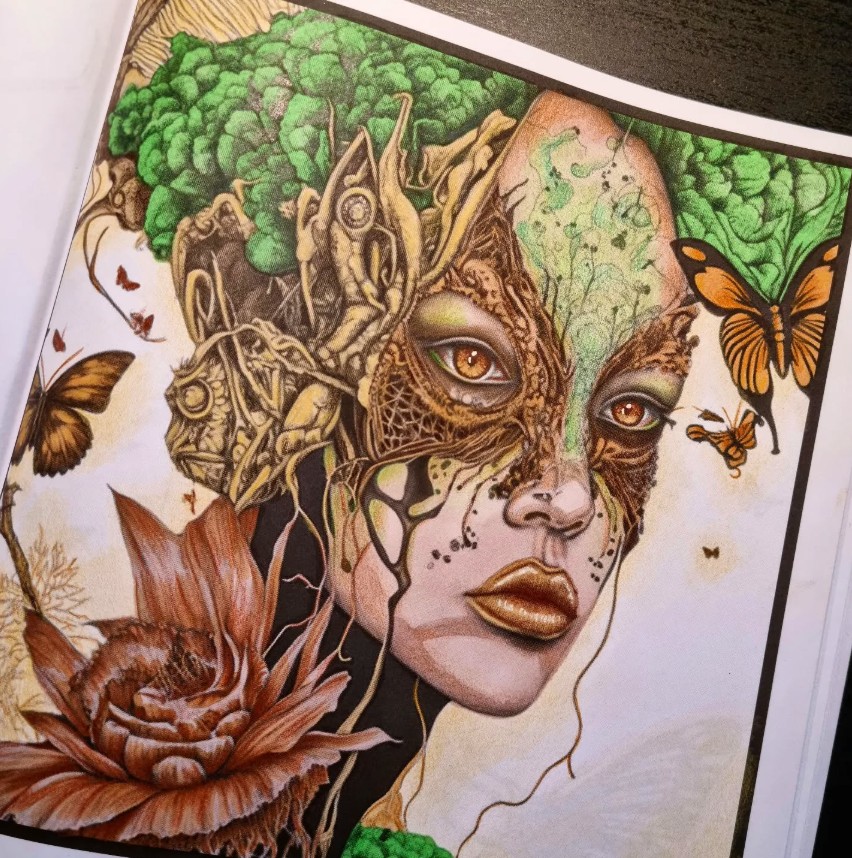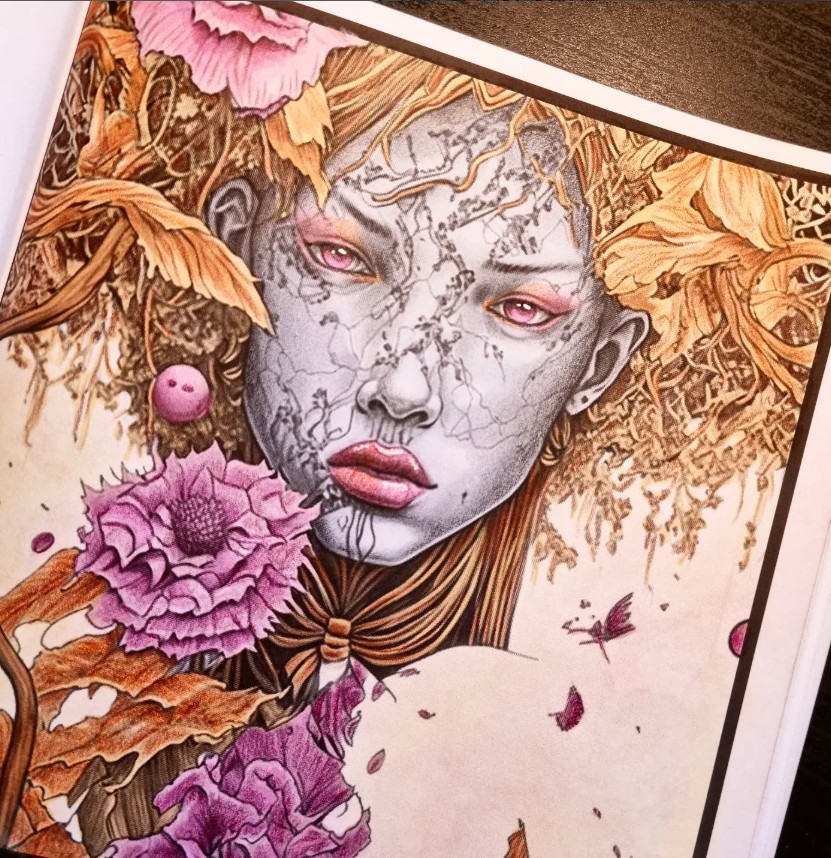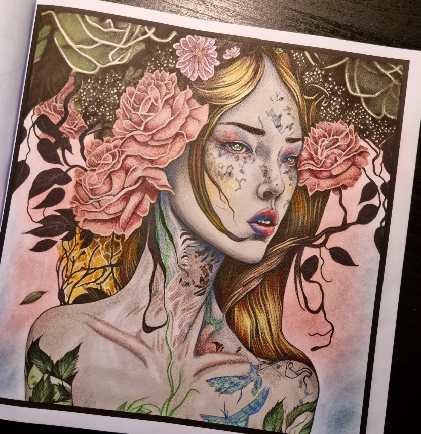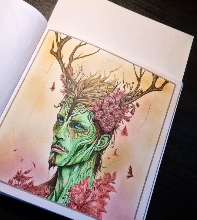 This coloring book contains 40 original illustrations of characters from the fantasy realm of Floria. Queens, princes, fairies, crows and more – creatures made of intricate flowers, plants and vines.