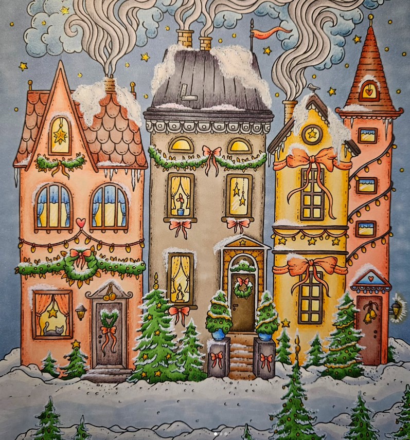 Boken är fylld med trivsamma julbilder som hela familjen kan hjälpas åt att färglägga: tomtar, pynt, julgranar, snögubbar, fina paket, änglar och allt annat som hör julen till.