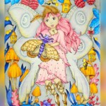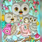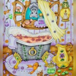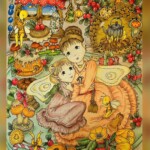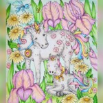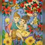 A lovely Czech adult colouring book hides a lot of original handmade illustrations inside which are connected by a thin and glittering thread of a tender story.. The main pictures to be coloured in are just on one side so you can use colour pencils and blend them happily as well as felt tip pens, liners or paints. You don´t have to worry about soaking through on the other side.. There is the main picture on one side and on the other side a small space is left decorated with little drawings where you can write: With what, When and Who painted the picture.. it also provides enough space for writing a short story or something like a story diary..i.e. What came on your mind while painting and where it ”took” you.