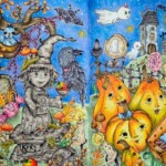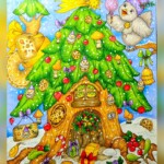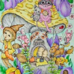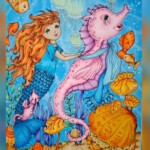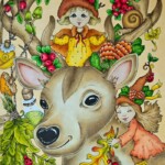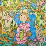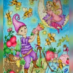 • A lovely Czech adult colouring book hides a lot of original handmade illustrations inside which are connected by a thin and glittering thread of a tender story. The main pictures to be coloured in are just on one side so you can use colour pencils and blend them happily as well as felt tip pens, liners or paints. You don´t have to worry about soaking through on the other side.. There is the main picture on one side and on the other side a small space is left decorated with little drawings where you can write: With what, When and Who painted the picture.. it also provides enough space for writing a short story or something like a story diary..i.e. What came on your mind while painting and where it ”took” you.